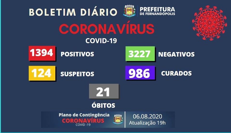Fernandópolis registra mais 52 casos positivos de Covid-19
