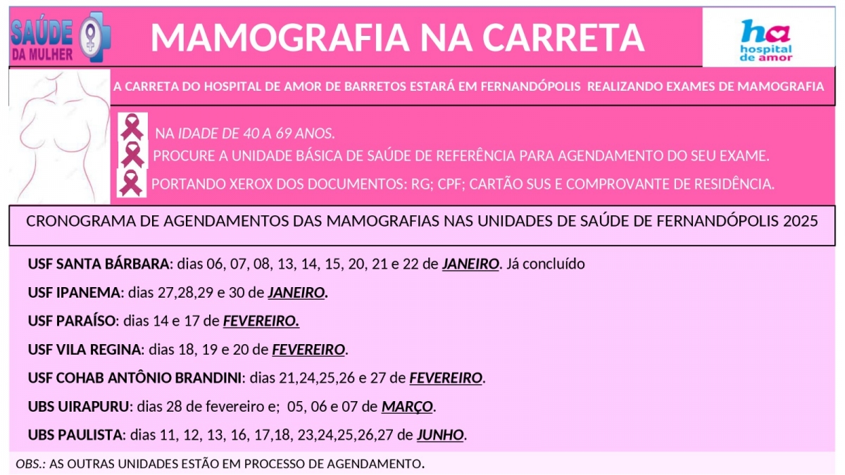 Saúde solicita que mulheres não faltem aos exames agendados
