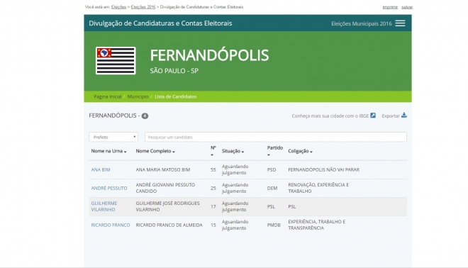 TSE revela o perfil dos 143 candidatos de Fernandópolis