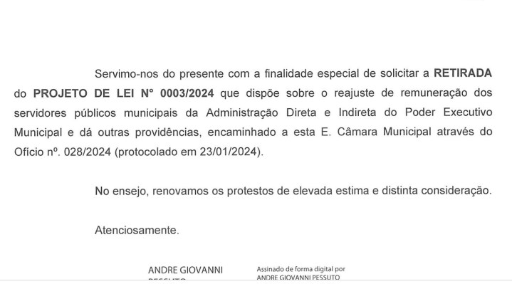 Prefeito volta atrás e retira projeto de reajuste dos servidores