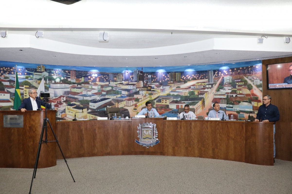 Acompanhado de assessores, prefeito usa tribuna da Câmara nesta 3ª