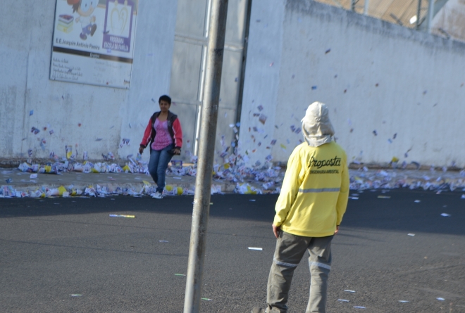 Esforço da justiça e varredoras se torna em vão em “mar” de santinhos