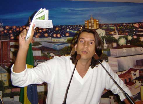 Enfermeiro Manoel faz leque, na tribuna, com carnês de IPTU