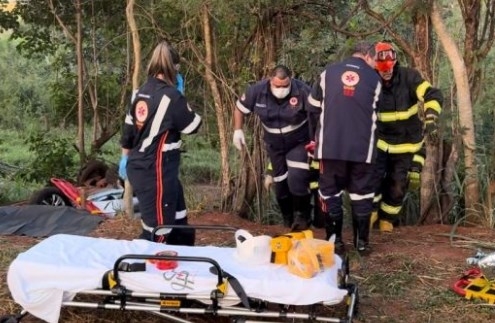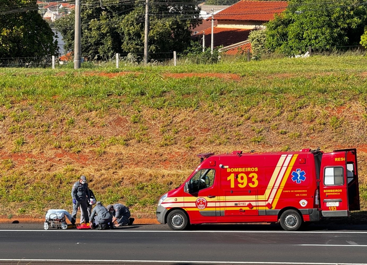 Casal fica ferido em queda de moto após pneu estourar na SP-320