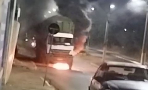 Carreta canavieira pega fogo na Avenida Augusto Cavalin