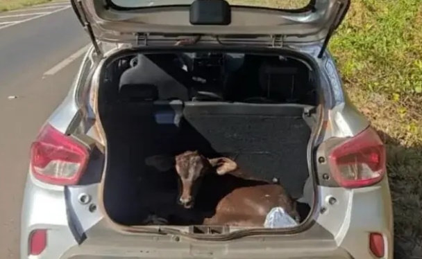 Polícia prende três por furto de gado na região; um deles transportava bezerro no porta malas do carro