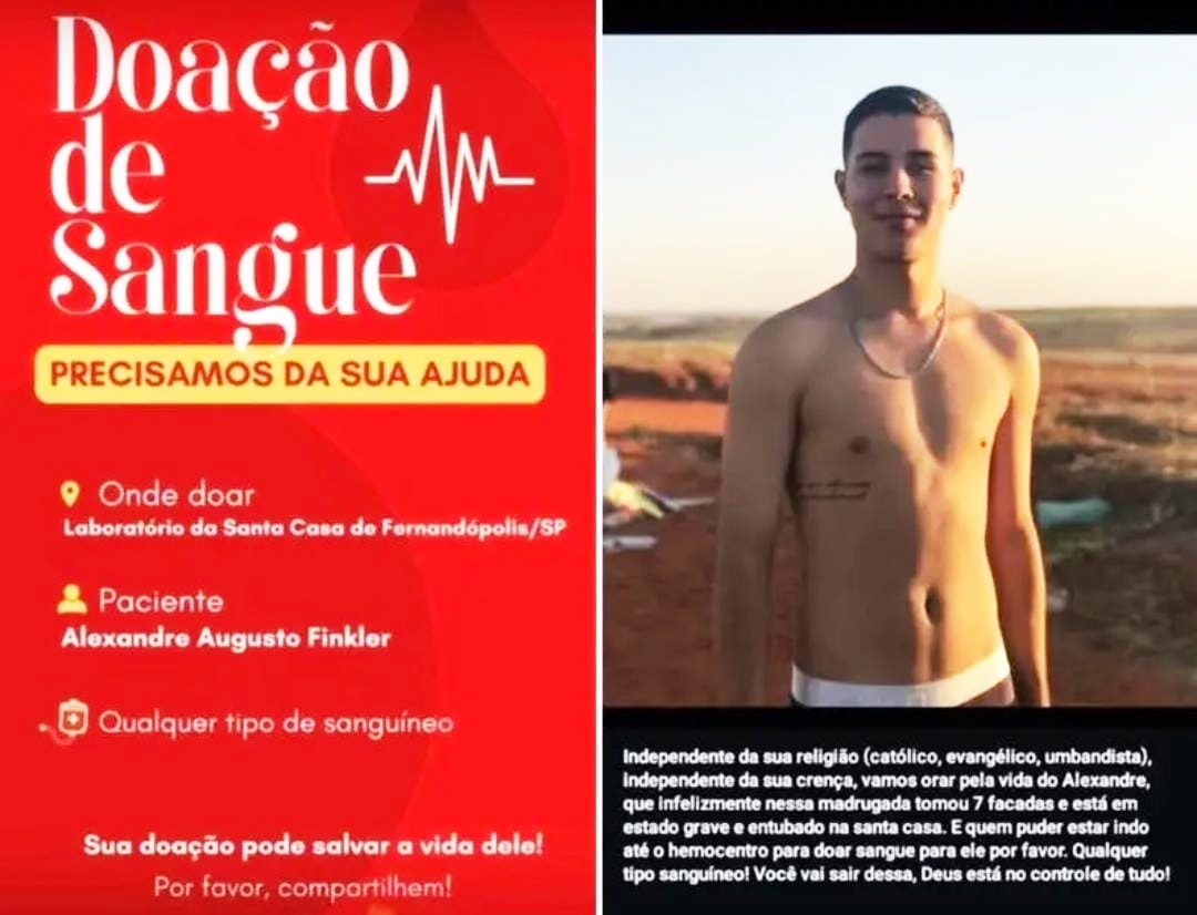 Campanha nas redes sociais mobiliza população para doação de sangue a jovem vítima de esfaqueamento