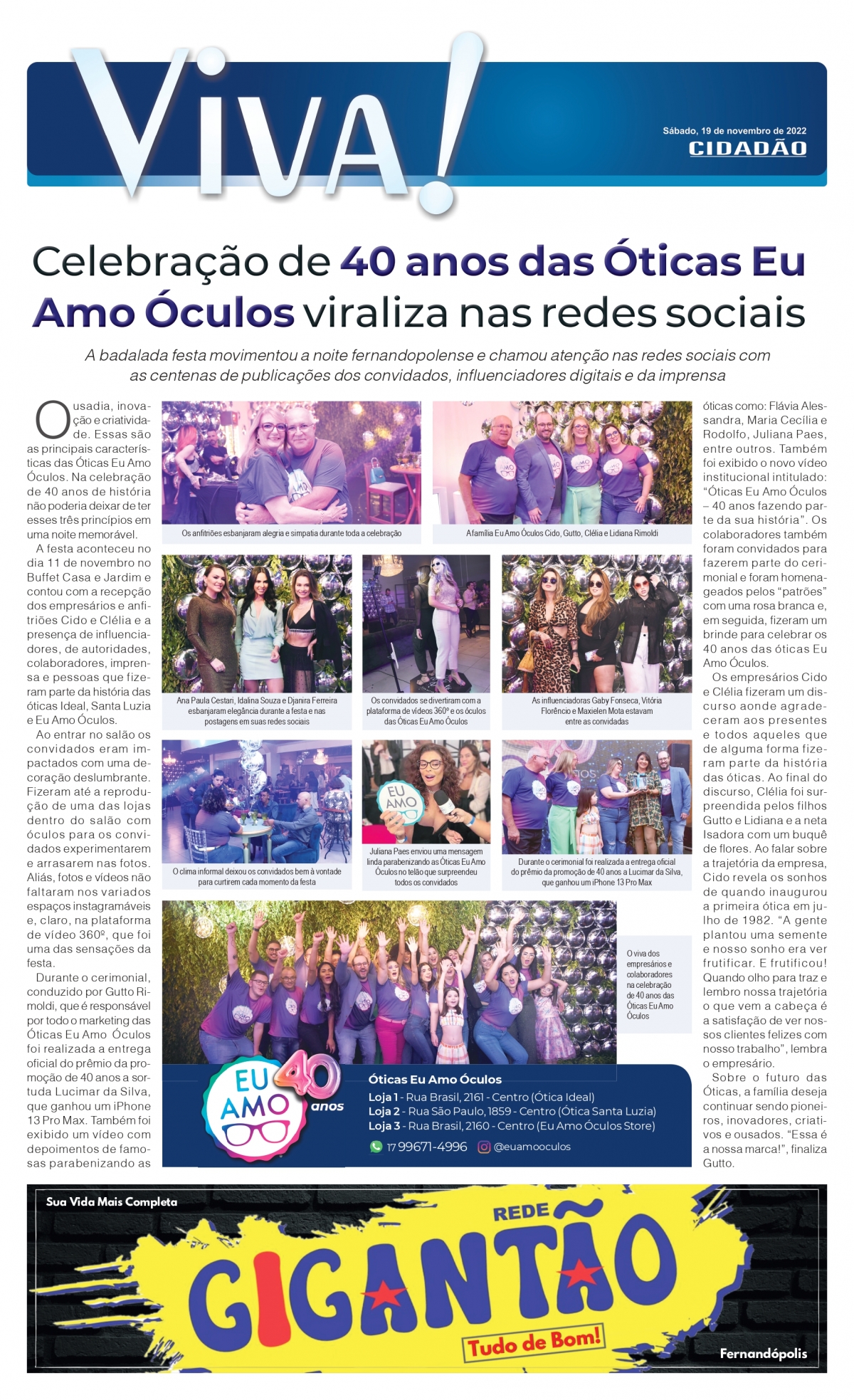 Celebração de 40 anos das Óticas Eu Amo Óculos viraliza nas redes sociais