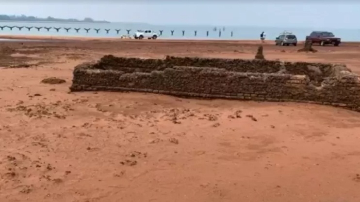 Ruínas de Rubinéia reaparecem com baixa do reservatório de Ilha Solteira