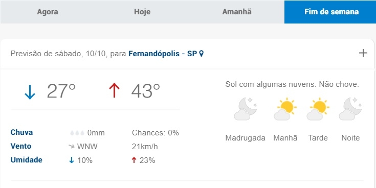 Fernandópolis e região devem ter temperatura de até 43º no decorrer dos próximos 15 dias