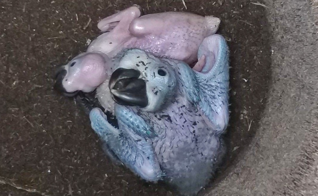 Projeto flagra imagem de filhotes de arara-canindé na praça