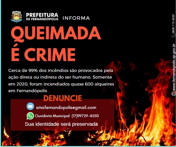Prefeitura faz campanha de prevenção sobre crimes ambientais com queimadas