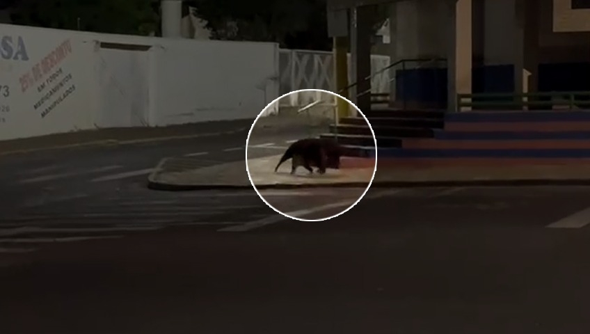 "Fujão noturno": Tamanduá-bandeira escapa de universidade e passeia por avenida em Fernandópolis
