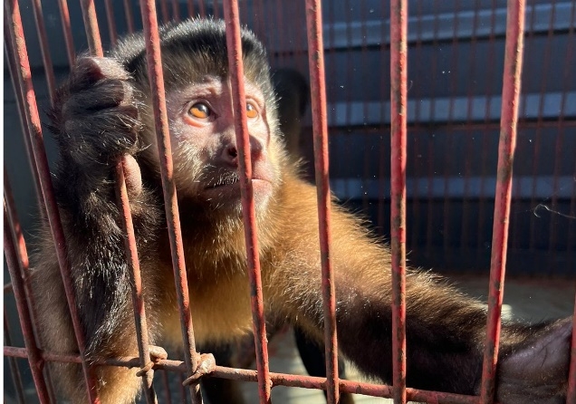 Macaco-prego apreendido recebe cuidados no Hospital Veterinário em Fernandópolis