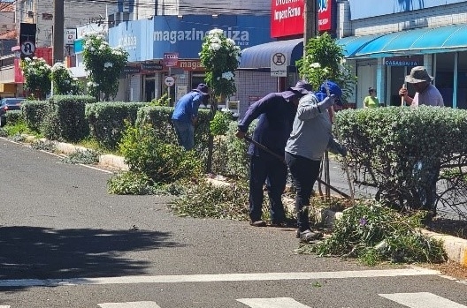 Meio Ambiente e Obras realizam poda ornamental e limpeza na área central