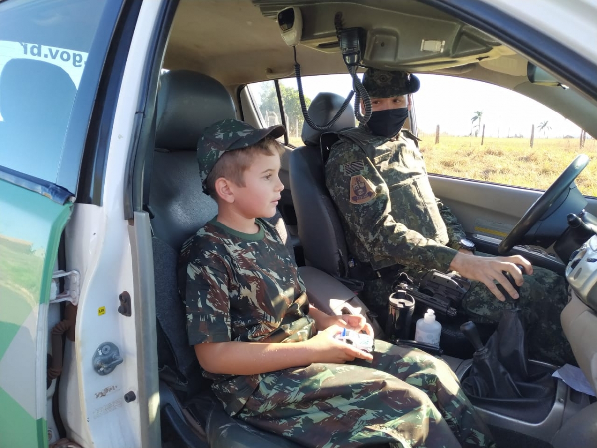 Menino recebe homenagem da Policia Ambiental no dia do seu aniversário