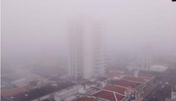Neblina cobre Fernandópolis após frente fria e queda de temperatura