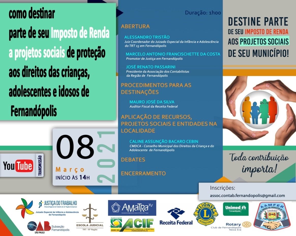 Justiça do Trabalho promove live sobre destinação de IR para projetos sociais