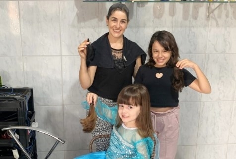 Mãe e filhas cortam cabelo para doar "para quem não tem"