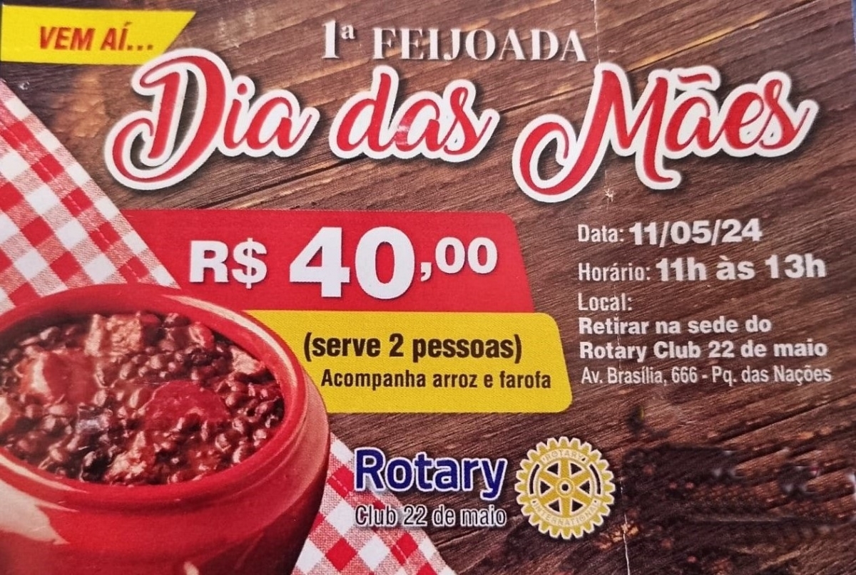Rotary 22 de Maio promove a "Feijoada do Dia das Mães"