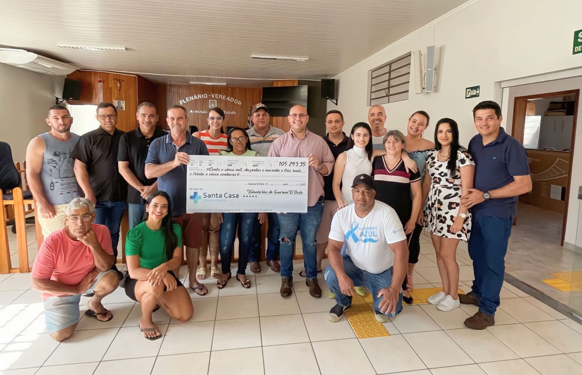 Voluntários de Guarani D’Oeste entregam cheque no valor de R$ 105.293,35 para a Santa Casa