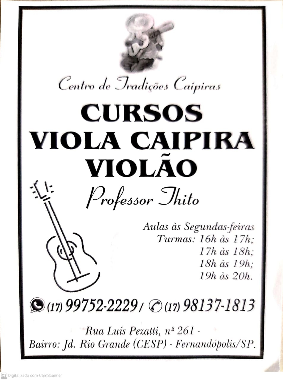 Centro de Tradições Caipiras de Fernandópolis abre inscrições para Curso de Violão