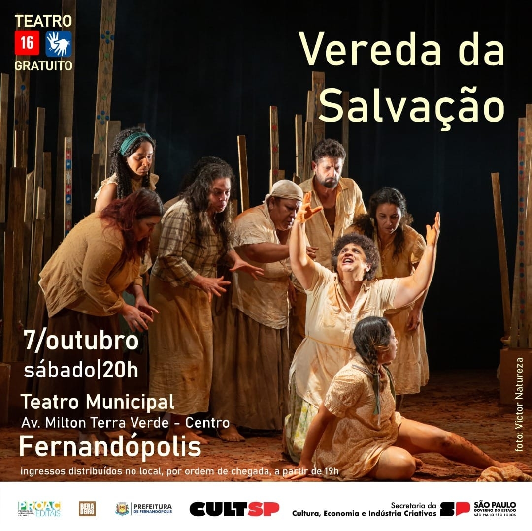 Teatro Municipal recebe amanhã, 07, o espetáculo gratuito ‘Vereda da Salvação’