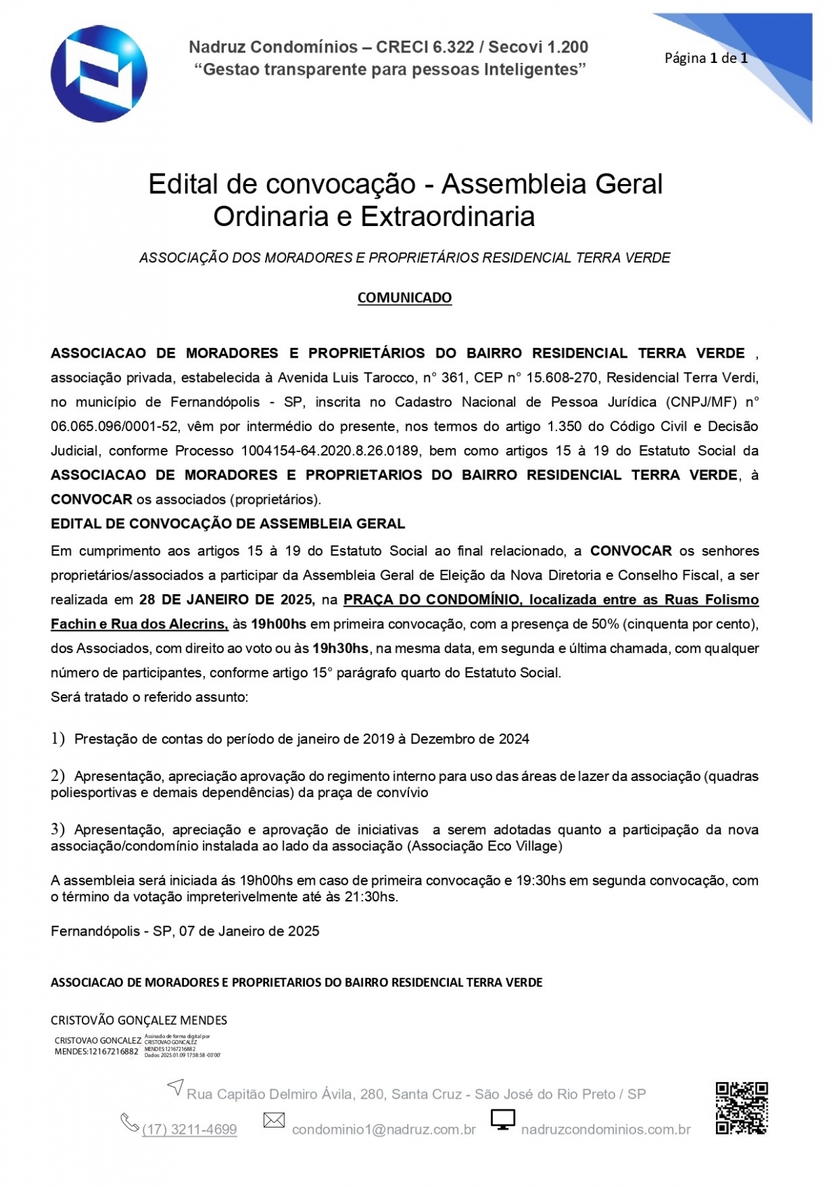 EDITAL DE CONVOCAÇÃO - ASSEMBLEIA GERAL ORDINÁRIA E EXTRAORDINÁRIA