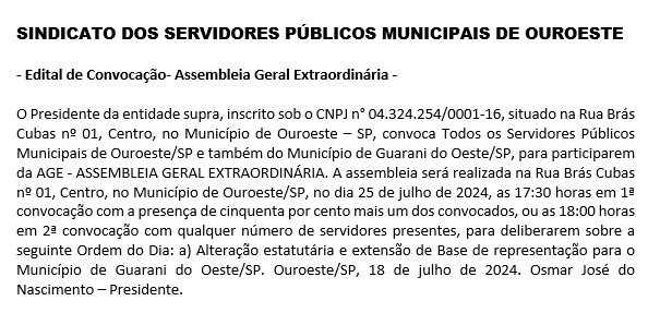 EDITAL DE CONVOCAÇÃO - ASSEMBLEIA GERAL EXTRAORDINÁRIA