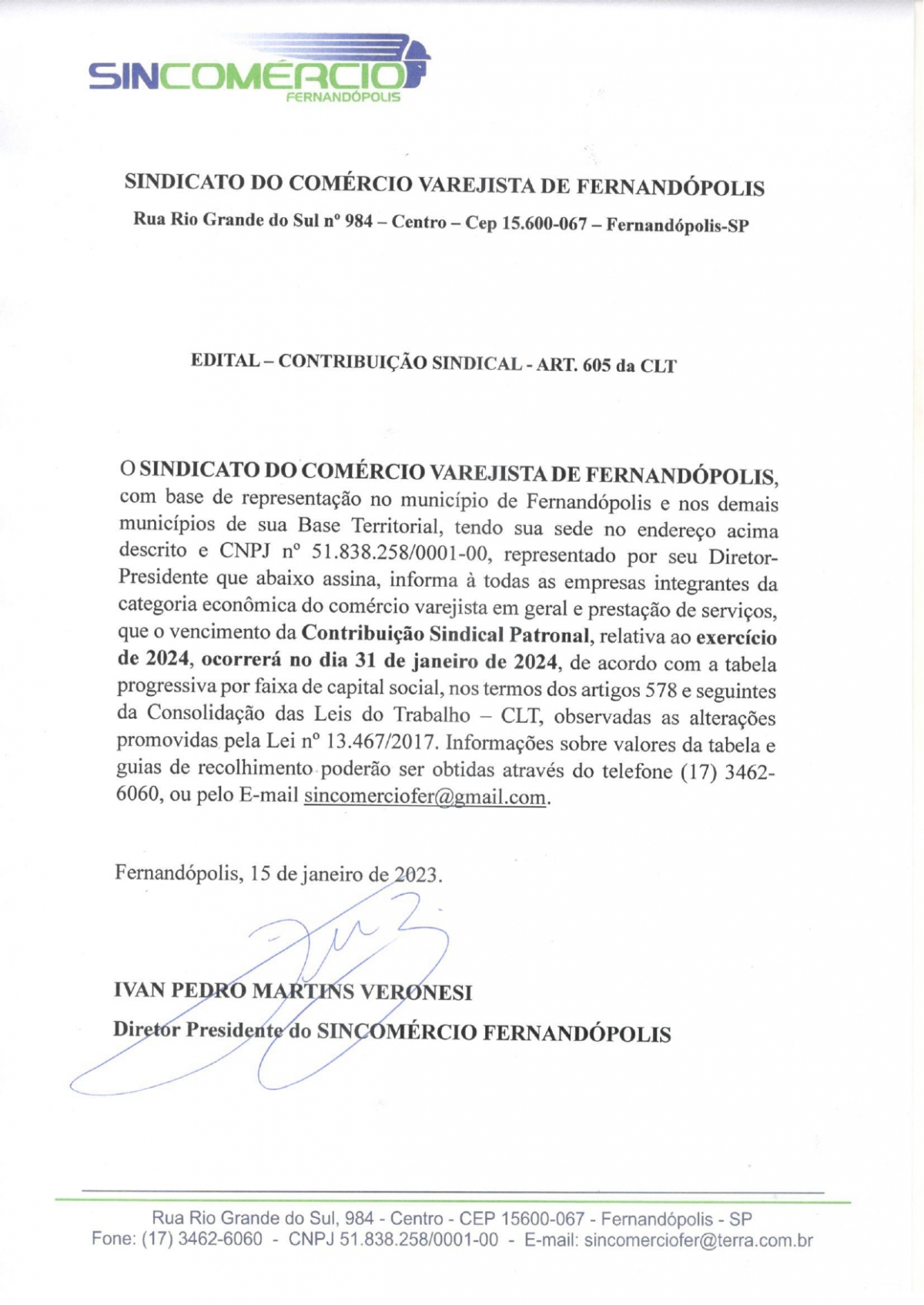 Edital - Contribuição Sindical - Sincomércio