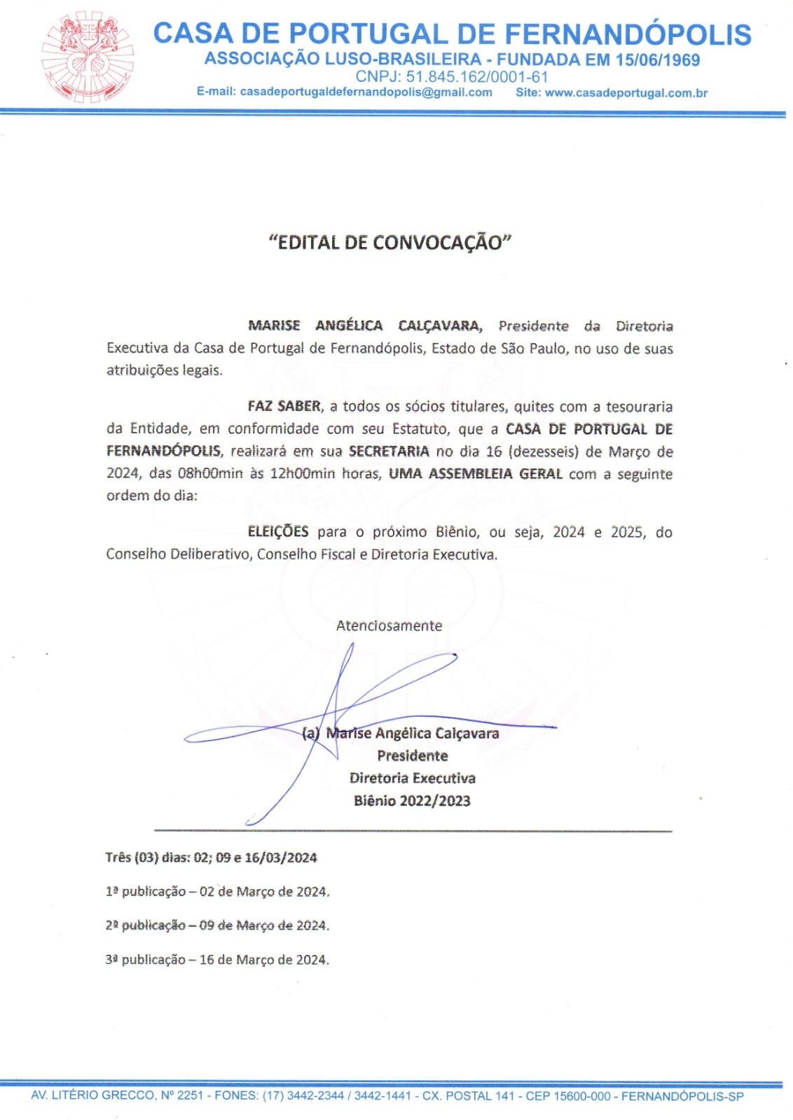 CASA DE PORTUGAL - EDITAL DE CONVOCAÇÃO