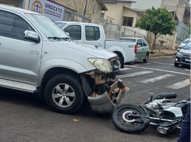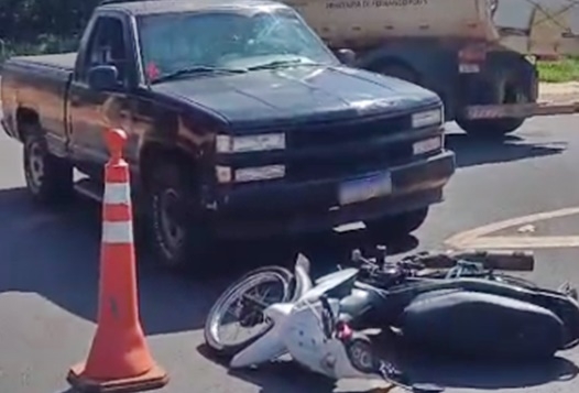 Jovem de 18 anos fica ferido em colisão entre moto e caminhonete na Avenida dos Arnaldos