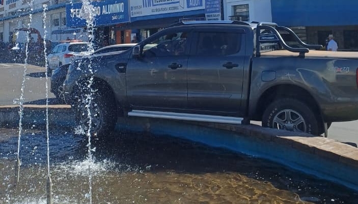 Motorista sofre mal súbito e caminhonete vai parar dentro da fonte em Fernandópolis