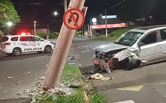 Motorista fica ferido após bater carro em poste na Avenida dos Arnaldos, perto da UPA