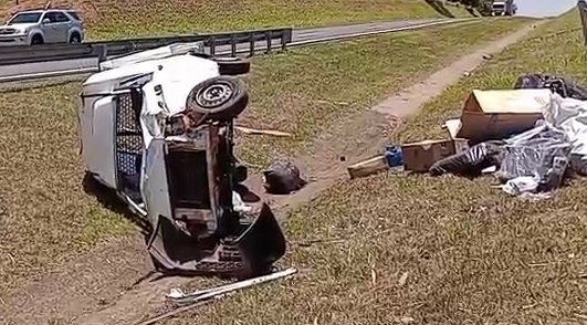 Motorista perde o controle e capota na Rodovia Euclides da Cunha
