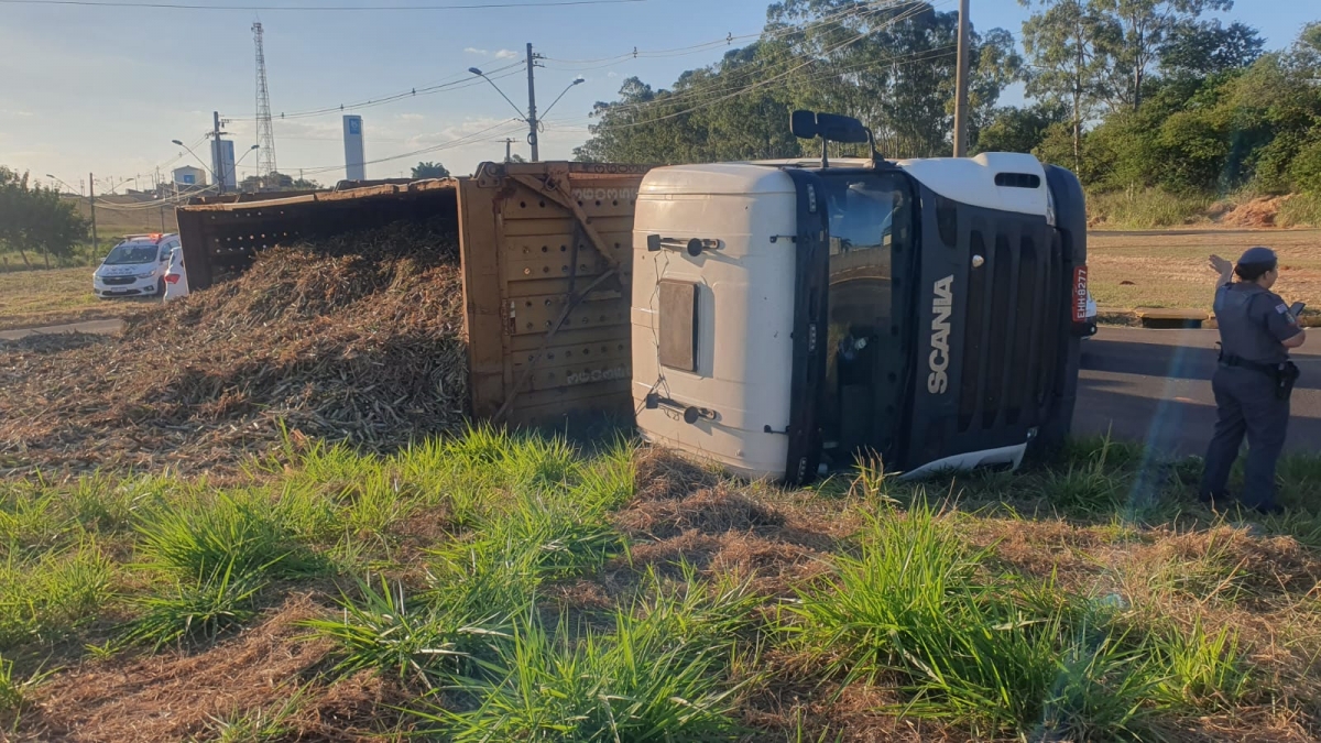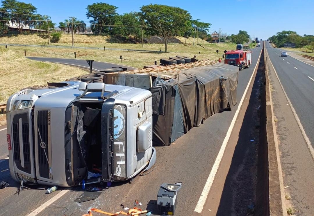 DE NOVO: Carreta tomba ao deixar alça de acesso no Trevão de Água Vermelha