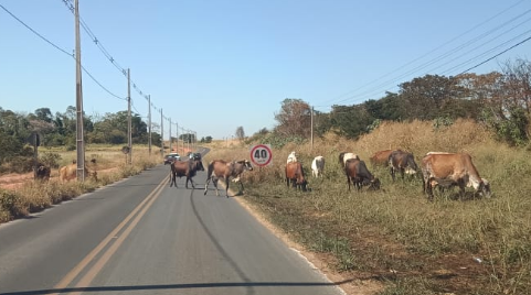 Gado solto invade a Vicinal Carlos Gandolfi e coloca motoristas em risco de acidentes