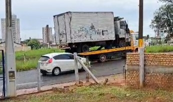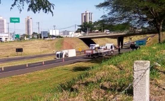 Mais um caminhão tombado no canteiro central da Euclides da Cunha em Fernandópolis