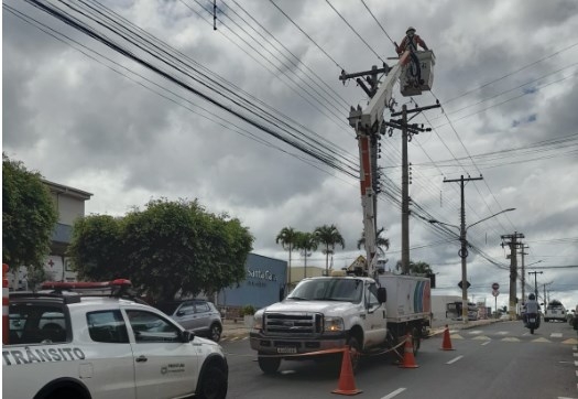 Manutenção de rede elétrica interdita faixa da Avenida Afonso Cáfaro