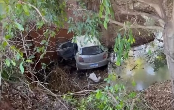 Carro despenca em ribanceira após atropelar tamanduá em vicinal na região