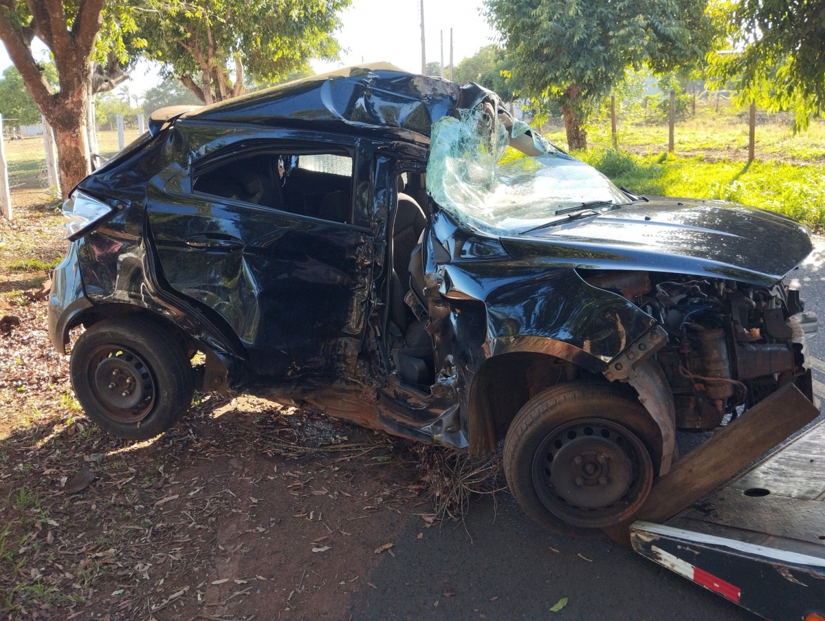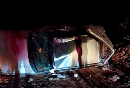 Mulher morre e duas ficam feridas após carro capotar em rodovia vicinal