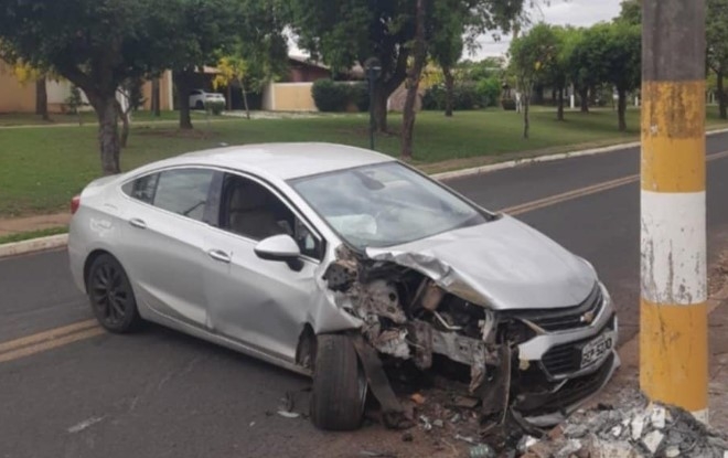 Motorista fica ferido após bater carro em poste na Avenida dos Arnaldos, perto da UPA