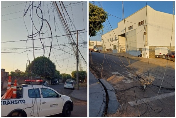 Carreta se enrosca em fios de internet e causa transtorno no trânsito
