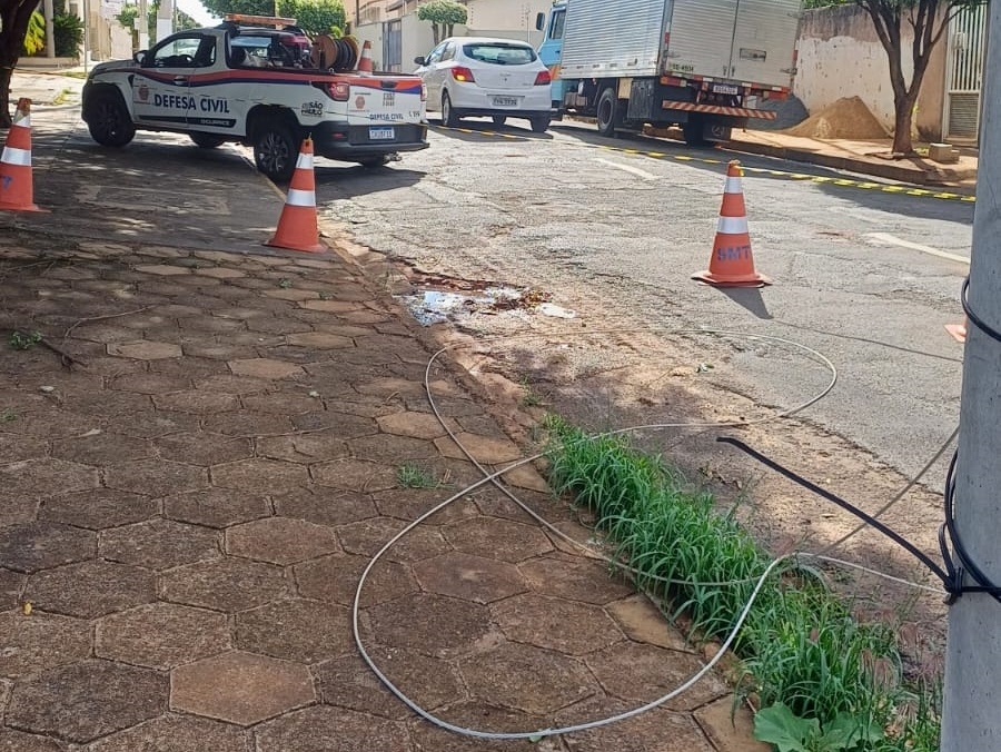 Cabo de energia se rompe perto de escola; agente de trânsito isola área