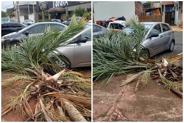 Ventania derruba coqueiro próximo ao Fórum e atinge veículo