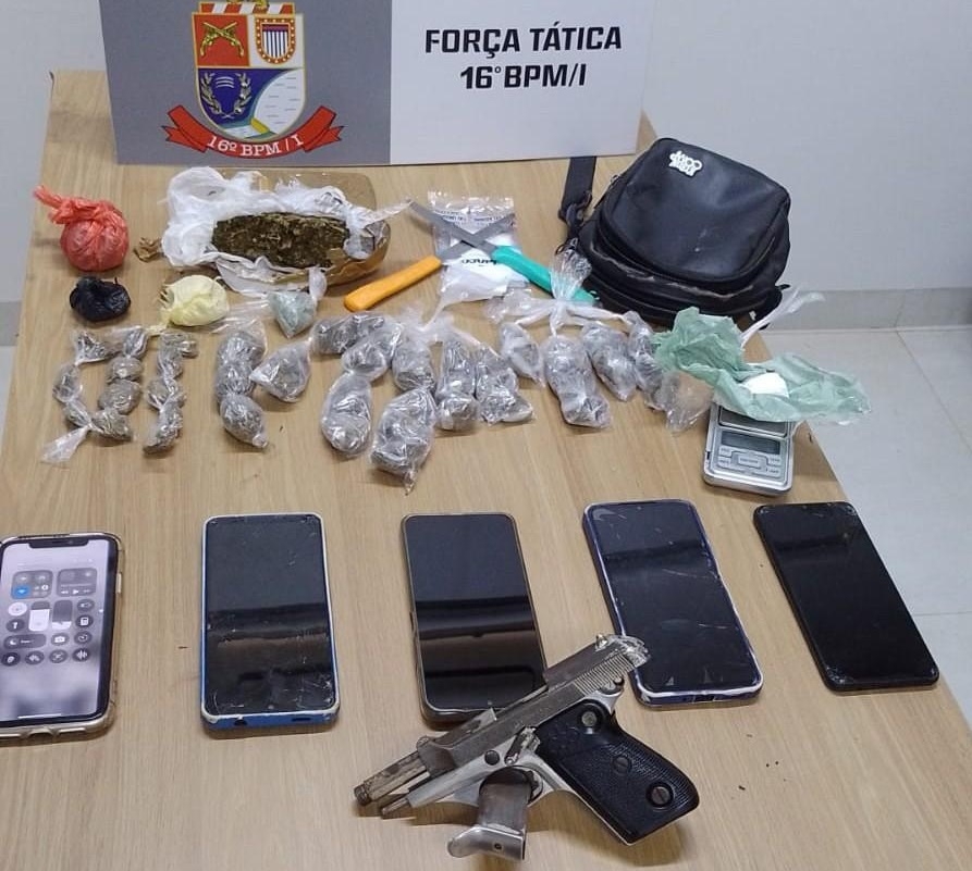 Força Tática apreende arma e meio quilo de maconha em operação na região