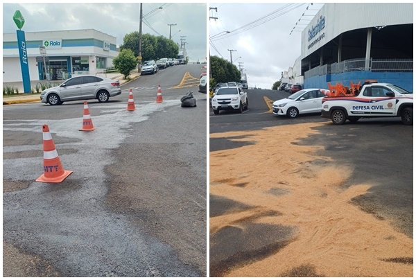 Caminhão derrama óleo e causa quedas em rotatória da Avenida Expedicionários