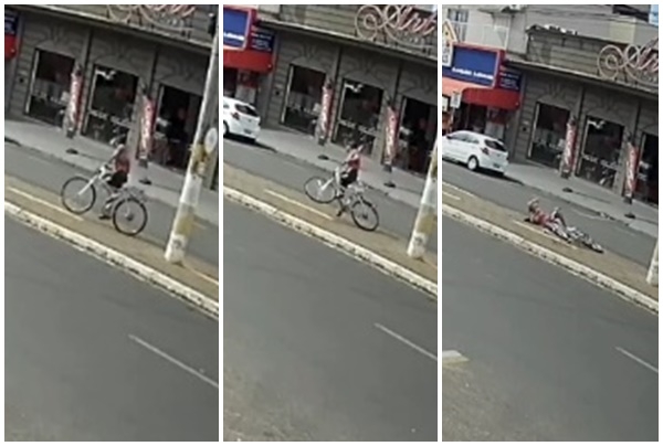 Idoso enrosca bicicleta em cabos de internet e sofre queda na ciclovia; veja vídeo