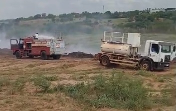 Fernandópolis realiza operação de rescaldo após incêndio no Ecoponto