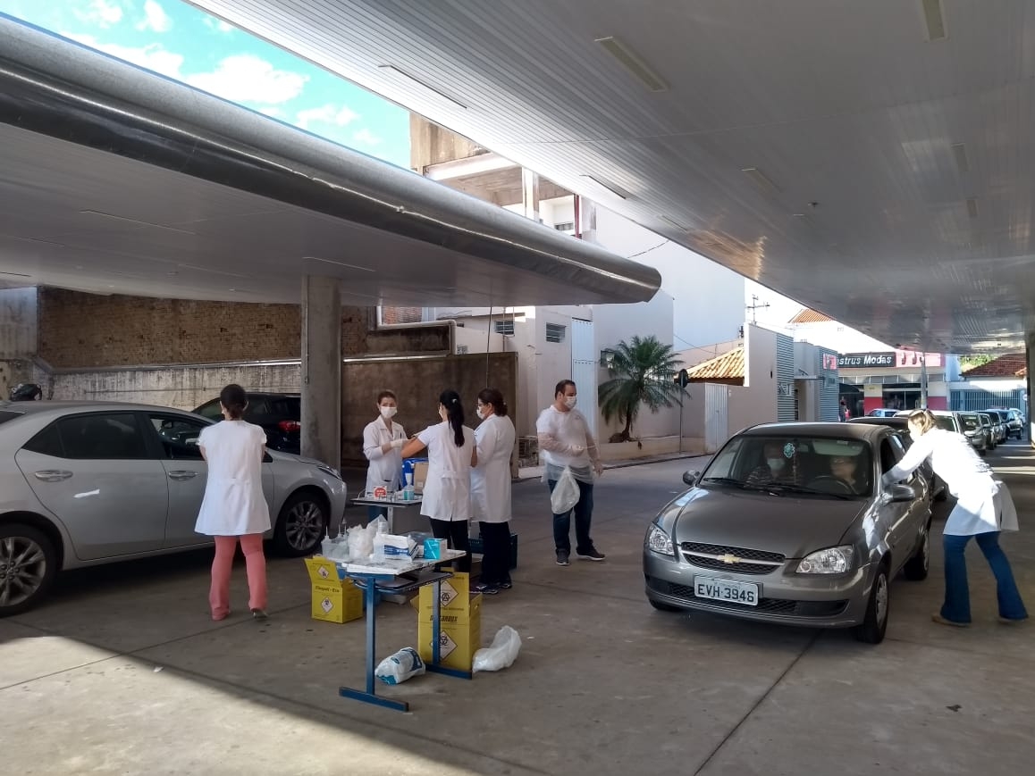 O esquema de drive thru contou com o apoio da Polícia Militar que montou um esquema de segurança para controlar o fluxo de veículos nas imediações dos locais indicativos para a vacinação.